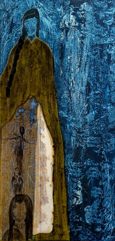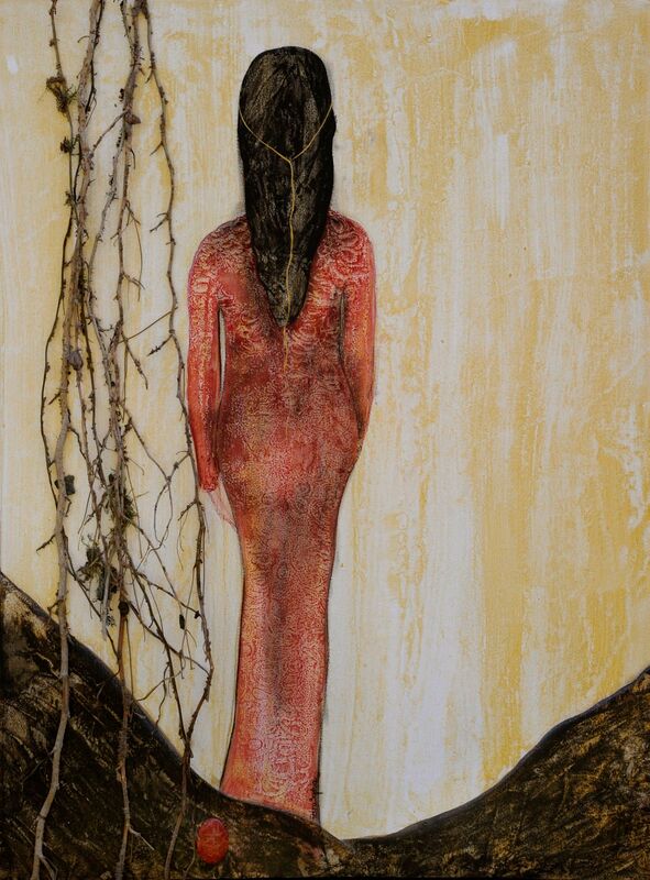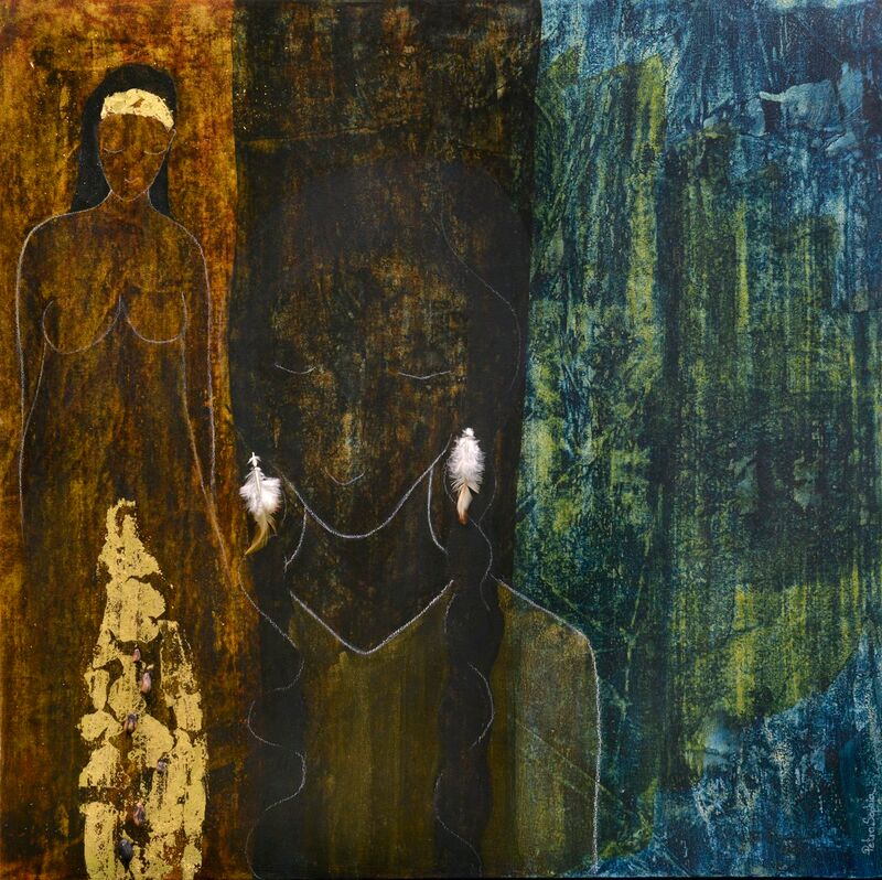 Acryl, Pastell auf Leinwand mit Naturapplikationen