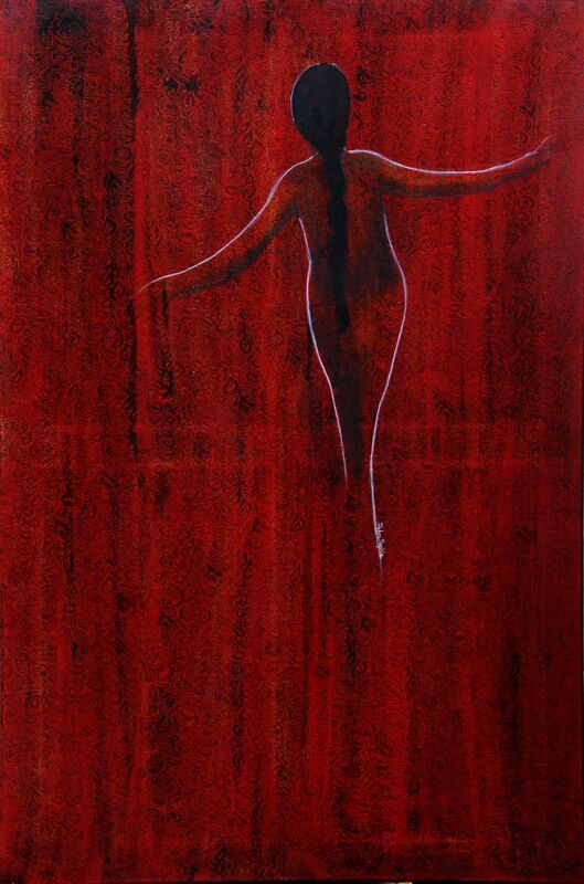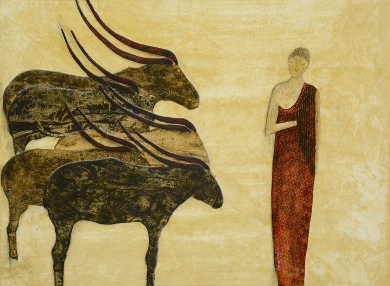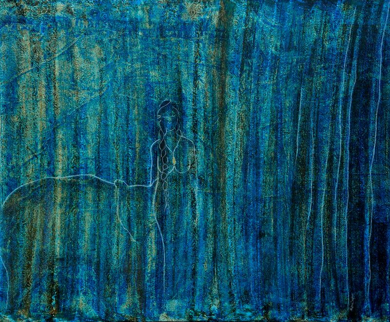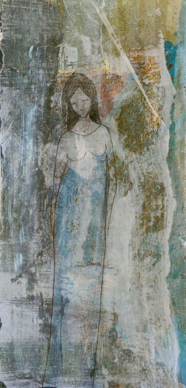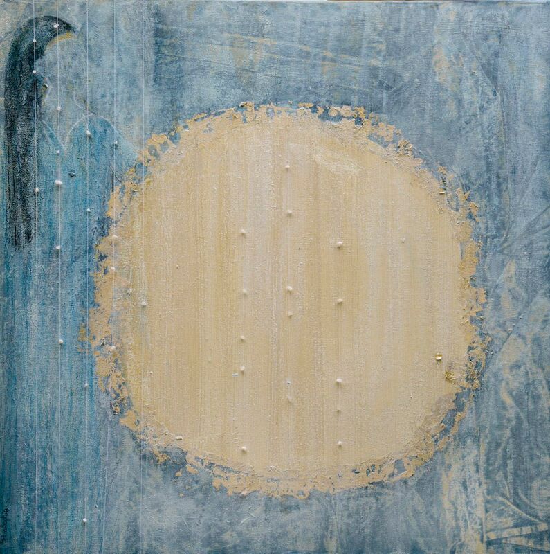 Acryl, Pastell auf Leinwand mit Mondsteinaplikation