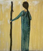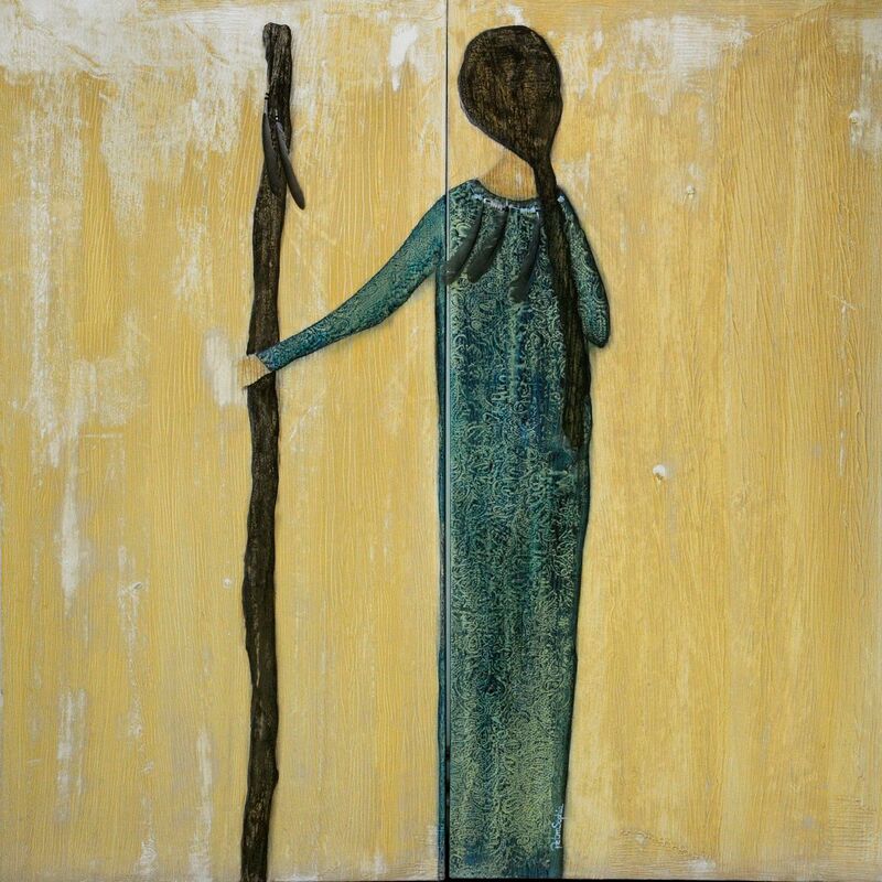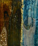 Acryl, Pastell auf Holz mit Bernsteinapplikationen